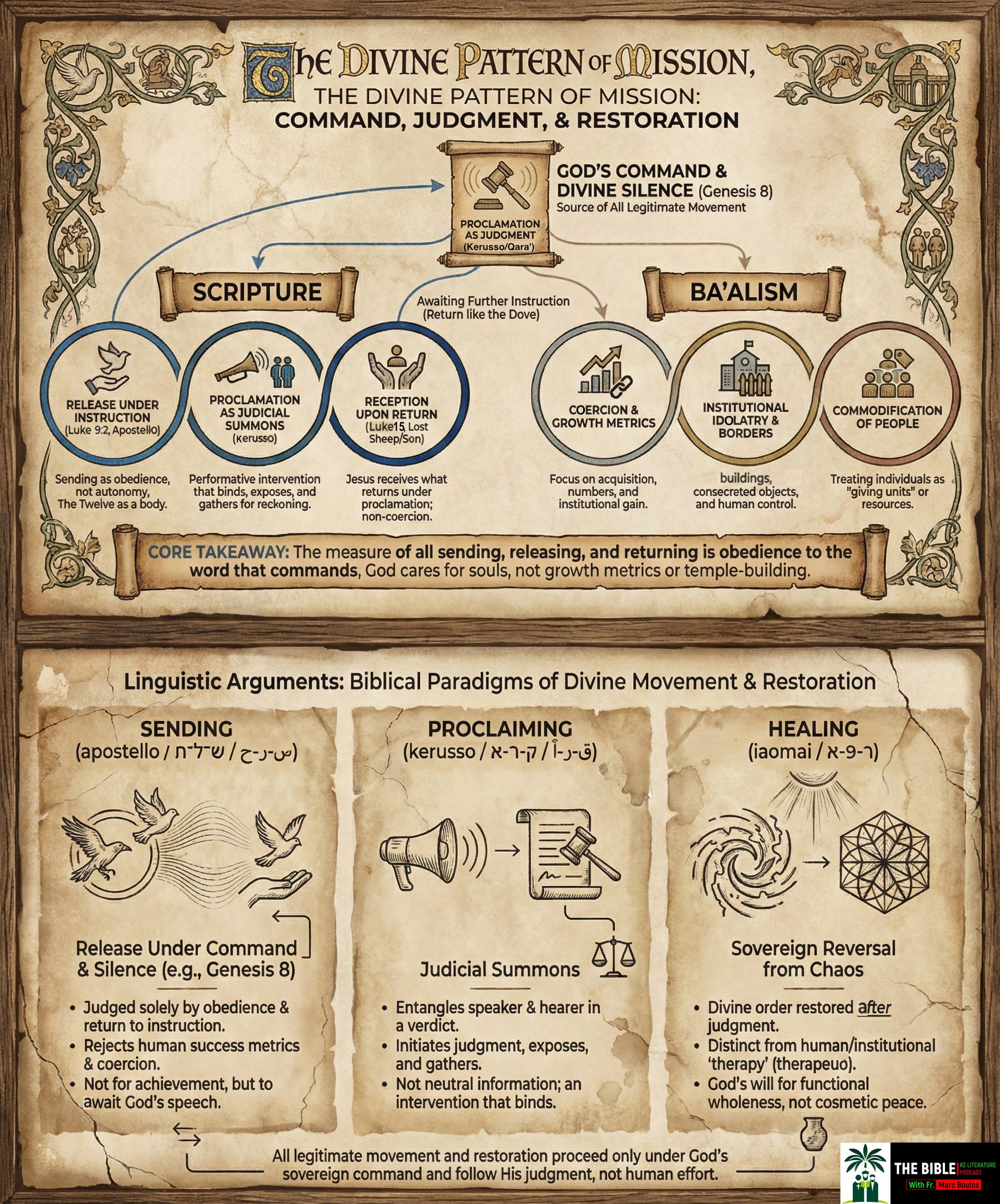 In this light, Luke 9:2 is not missionary enthusiasm. It is the Flood’s test restaged. Just as the world after the Flood could not be navigated by observation alone, so the world into which the Twelve are sent cannot be traversed by initiative, skill, or zeal. Jesus first names the Twelve as a body and then releases them, not to demonstrate competence, but to test obedience.
