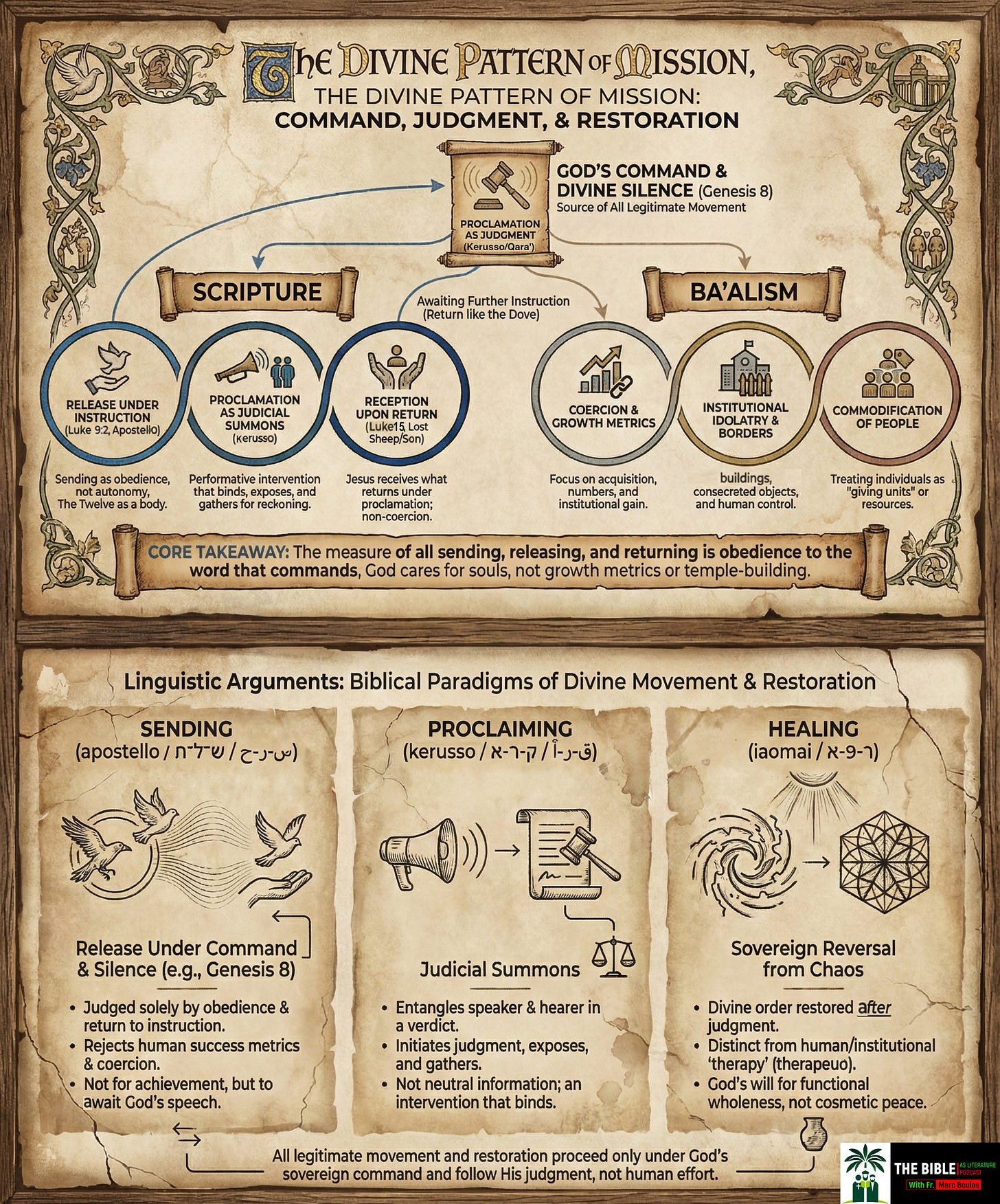 The question is not whether they can move, survive, or succeed. The question is whether they can be released without severing themselves from instruction. Like the raven, they are released into open space. Like the dove, they must remain oriented toward the word. The sending is not about growth or expansion. It is about hearing.